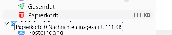 Wenn ich den Inhalt vom Papierkorb lösche, dann bleibt die Angabe der Größe trotzdem noch erhalten.