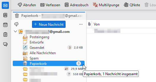Also keine Nachricht mehr, trotzdem die Anzeige von 111 KB.