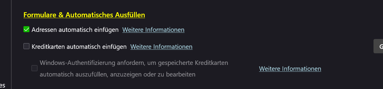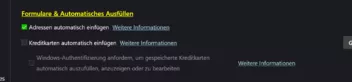 Unter "Das automatische Einfügen von Adressen aktivieren und deaktivieren" Punkt 3 wird beschrieben, dass man das Häkchen "Adressen automatisch einfügen" setzen muss. Leider kann ich in meinen Einstellungen dieses Häkchen nicht setzen, da es nicht aufgelistet ist. Unter "Formular & Automatisches Ausfüllen" finde ich nur eine (aktivierte) Auswahl für Kreditkarten.