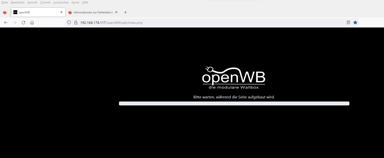 Die Adresse http://192.168.178.117/openWB/web/index.php wird zwar aufgerufen aber der Startbildschirm friert lediglich ein (s. Anhang) ...