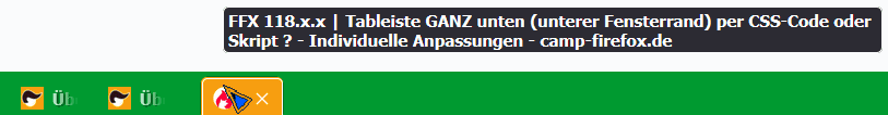 Hat den Titel des Themas von „FFX 118.x.x | Tableiste GANZ unten (unterer Fensterrand) per CSS-Code oder Skript ?“ zu „FFX 118 | Tableiste GANZ unten (unterer Fensterrand) per CSS-Code plus Skript ?“ geändert.
