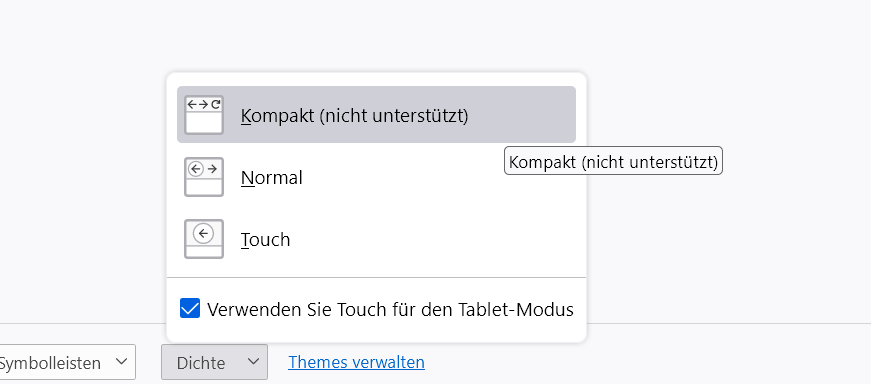 (Tableiste unter Fenster, Navigations- & Menüleiste schmal, engere Zeilenabstände in den Lesezeichen, usw.)