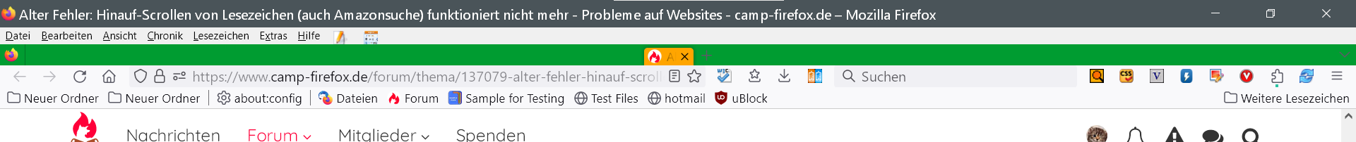 BTW: Ein alter Lesezeichen-Fehler ist wieder da - sie lassen sich nicht an den Anfang scrollen (auch in 115ESR). Ebenso in der Amazon-Suche: https://www.amazon.de/