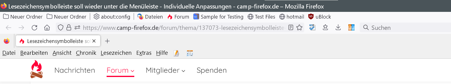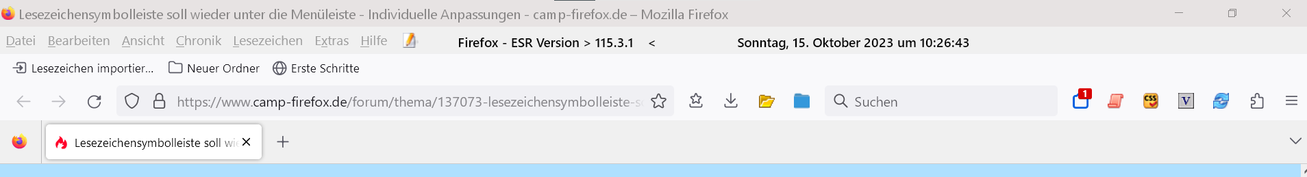 funzt im 115.3.1esr so offenbar nicht, da die Lesezeichen-Symbolleiste unterhalb der Adressleiste dargestellt wird.