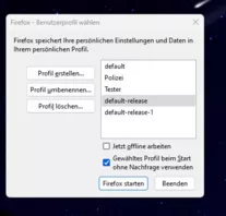 Wenn ich dann ein neues Profil erstellen, wird ein Profil mit dem Namen "default-release" erstellt,