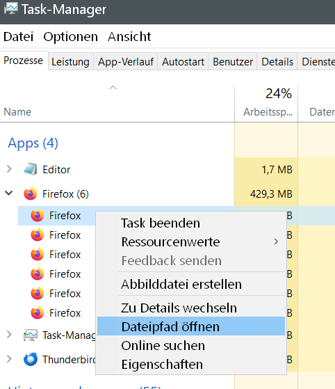 Wenn ich im Thunderbird eine Mail erhalte und dann hier auf einen weiterführenden Link klicke,