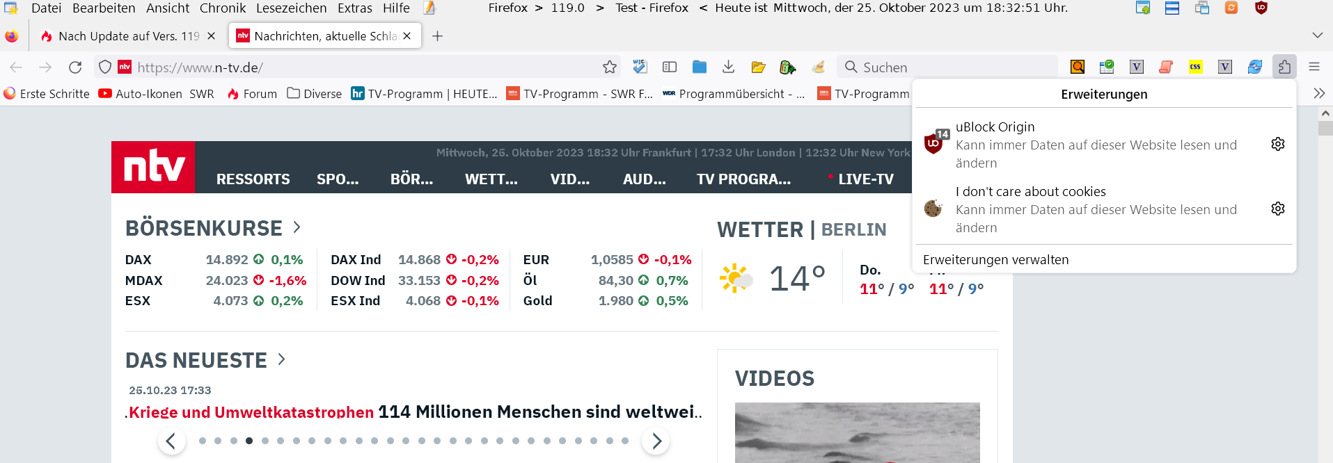 Merkwürdigerweise kommt es aber nur auf der Webseite von http://www.ntv.de vor, welche ich als Startseite eingerichtet habe.