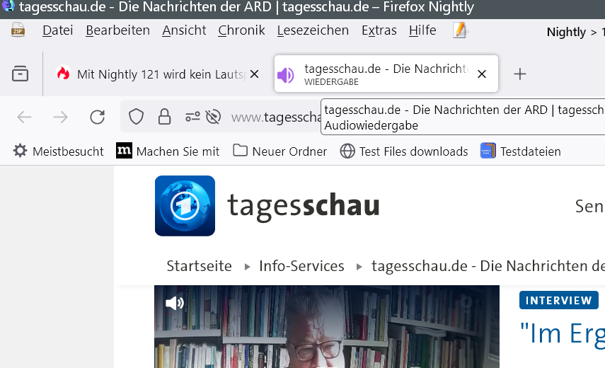 Mit Firefox 119 und Nightly 121 wird kein Lautsprechersymbol auf dem Tab mehr angezeigt