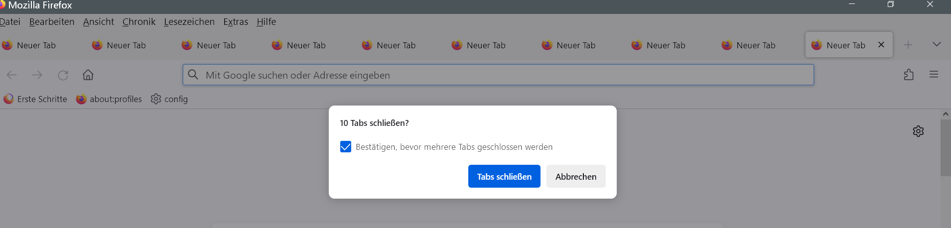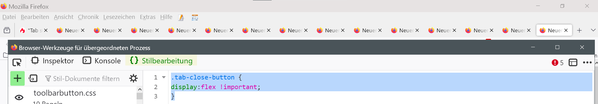 seit einiger Zeit fehlen bei ab 12 geöffneten Tabs die "Tab schließen"-Schaltflächen inkl "x", außer beim aktiven Tab.