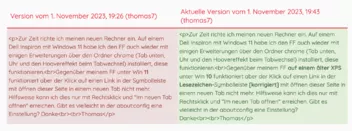 • Der zweite Satz steht sichtlich korrigiert da, da stand nichts von neuem Tab und so, sonst wäre ich auf besagte Einstellungen übergesprungen. Evtl kannst du als Admin die Textänderungen sehen und mich bestätigen, ansonsten war das unfair.