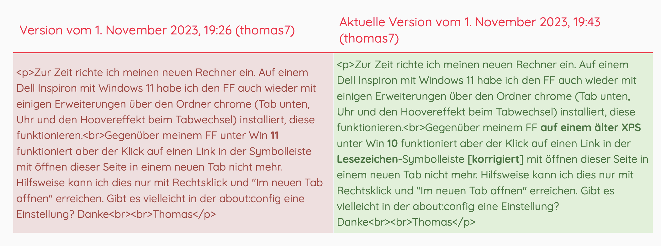 Gegenüber meinem FF auf einem älter XPS unter Win 10 funktioniert aber der Klick auf einen Link in der Lesezeichen-Symbolleiste [korrigiert] mit öffnen dieser Seite in einem neuen Tab nicht mehr. Hilfsweise kann ich dies nur mit Rechtsklick und "Im neuen Tab offnen" erreichen. Gibt es vielleicht in der about:config eine Einstellung? Danke