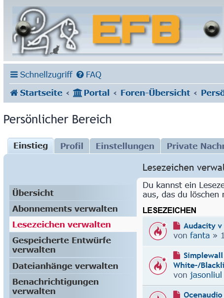 Beispiele aus anderen Foren, was mit ''Lesezeichenrubrik'' (Foren-Lesezeichen) gemeint ist ...