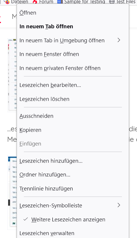 Breite Dropdownmenü der Lesezeichen-Symbolleiste