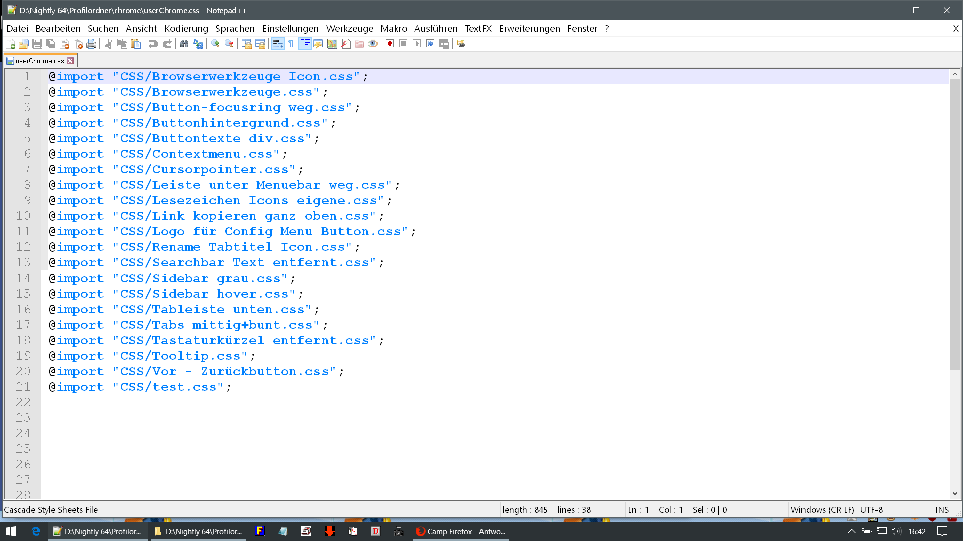 Da deine userChrome.css jetzt immer größer und dadurch unübersichtlicher wird, solltest du dir das mal ansehen: