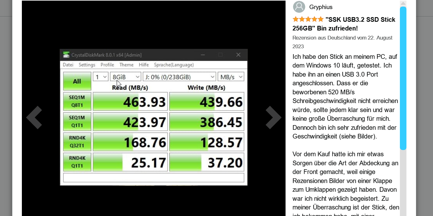Wenn du nur USB 3.0 hast, kannst du auch nicht mehr erwarten von einem Stick, der schon 3.2 kann. Die sind abwärtskompatibel, aber deine USB-Buchse nicht aufwärtskompatibel. Der Stick ist brauchbar für die nächste Büchse bei dir, die 3.2 kann. Der hier kann bereits 3.2, die anderen auch nur 3.1. Da nützen dir auch keine Tests.
