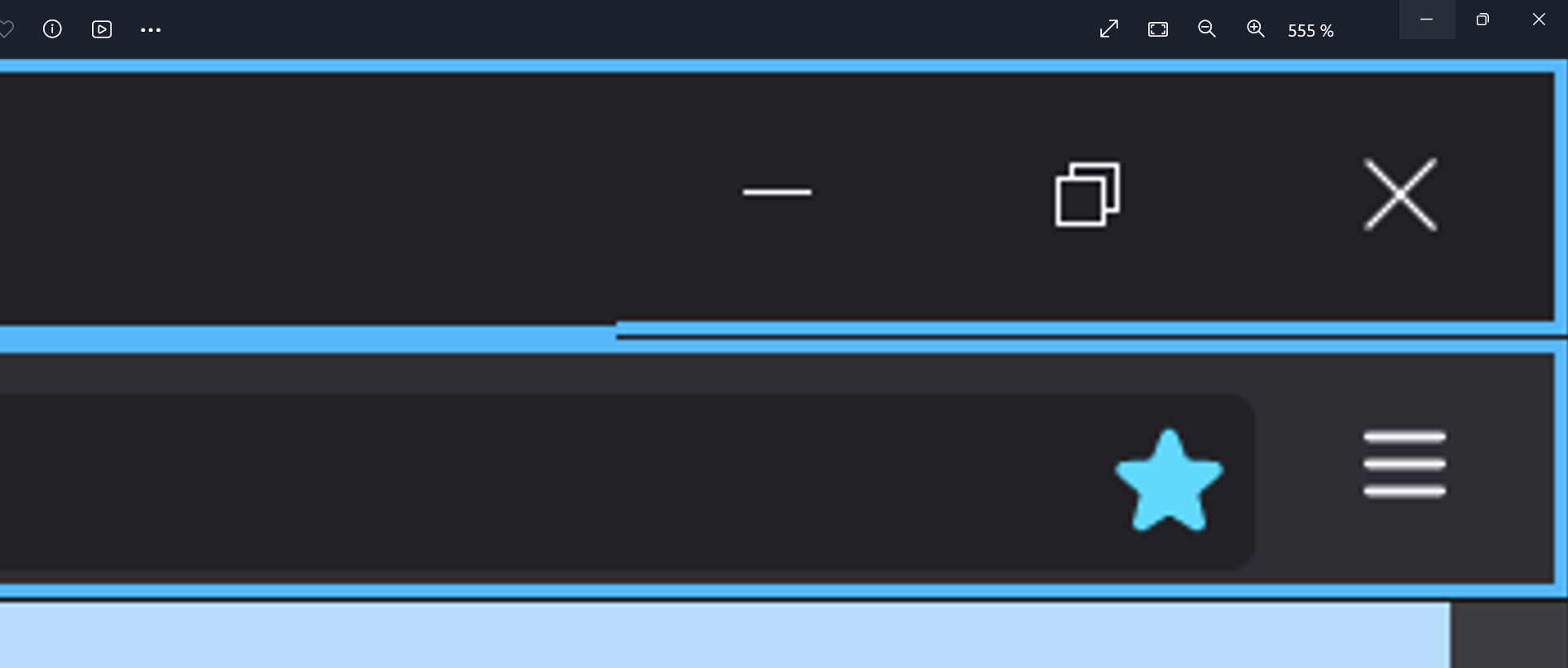 Sieht soweit gut aus, bis auf den Teil rechts wo sich die 3 Buttons (min, restore, close) befinden. Hier habe ich diesen unschönen schwarzen Streifen zwischen den blauen Rändern. Wie kann ich den wegkriegen?