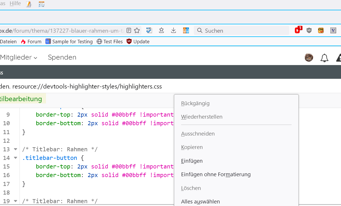 nachdem ich gestern abend in Bastellaune war hab ich mir mit unten stehenden css Code einen blauen Rahmen um meine Tabbar oder Titlebar gebaut.