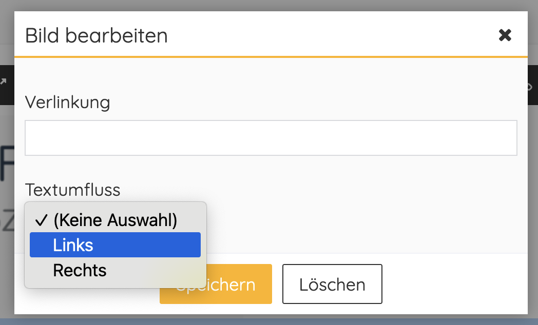 Die Textfluss-Option war vorher in einem Dialog versteckt, der bei Klick auf das Bild erschien: