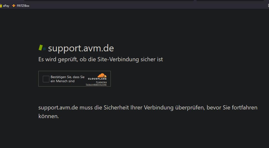 Dort gibt es Cloudflare als Standardanbieter. Nun passiert es, dass ich auf der Seite von support.avm.de ausgebremst werde.