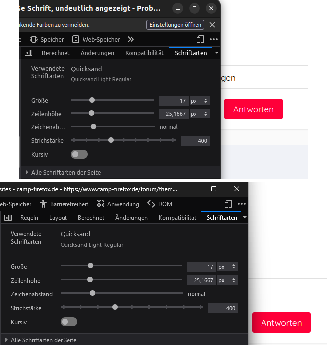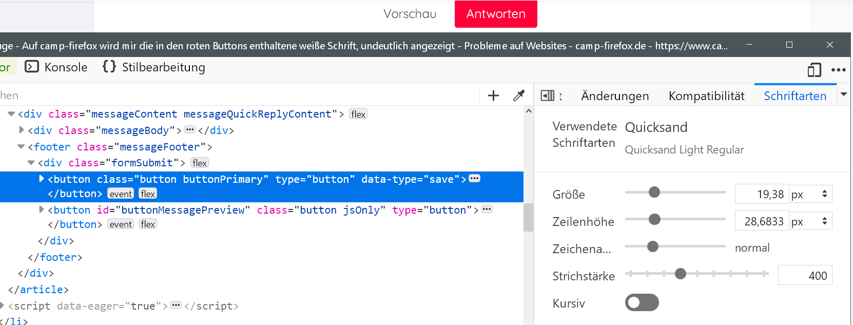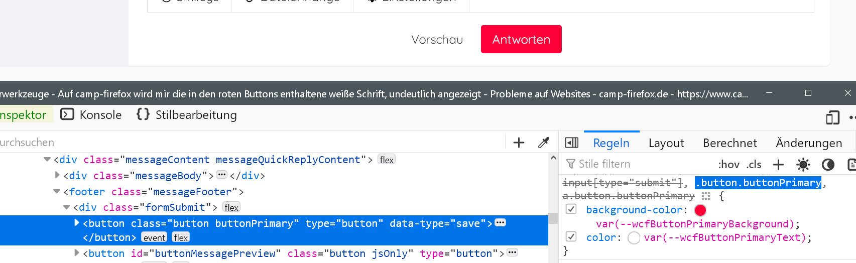 Auf camp-firefox wird mir die in den roten Buttons enthaltene weiße Schrift, undeutlich angezeigt