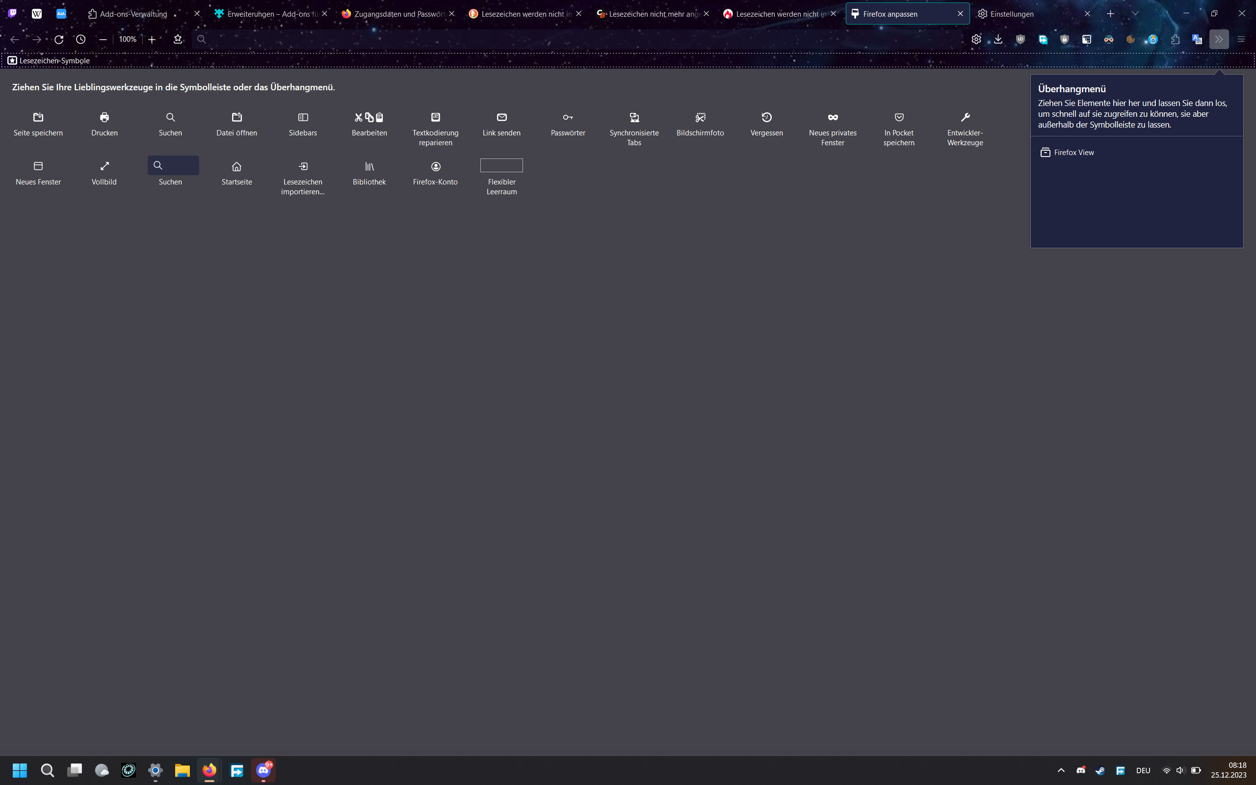 Ich hab heute angefangen, mir meinen neuen Rechner (XMG Core 16 MJ 2023 in Vollausstattung) einzurichten, hab mir Firefox raufgezogen, hab hier gelernt, dass sich die Addons gerne hinter dem Puzzleteil in der Symbolleiste verstecken und muss nun grade feststellen,
