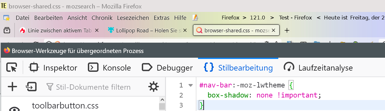 seit kurzem (Fx 121?) habe ich (wieder) die Linie zw. Tableiste und Symbolleiste. War früher (Fx110 ?) schon mal da und wurde dann beseitigt ![]()