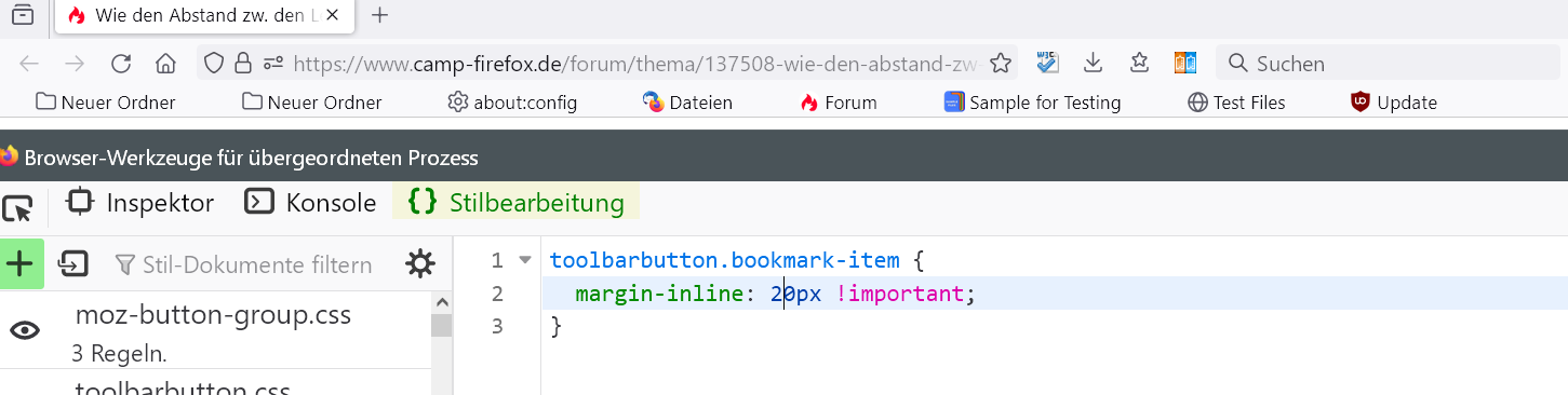 Wie den Abstand zw. den Lesezeichen in der Lesezeichen-Symbolleiste vergrößern?