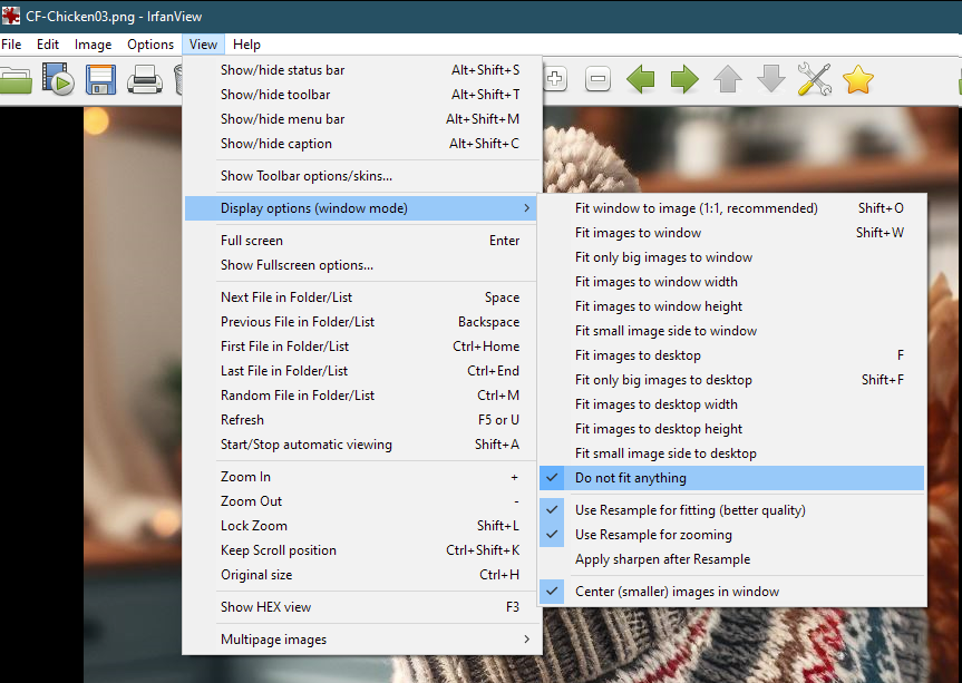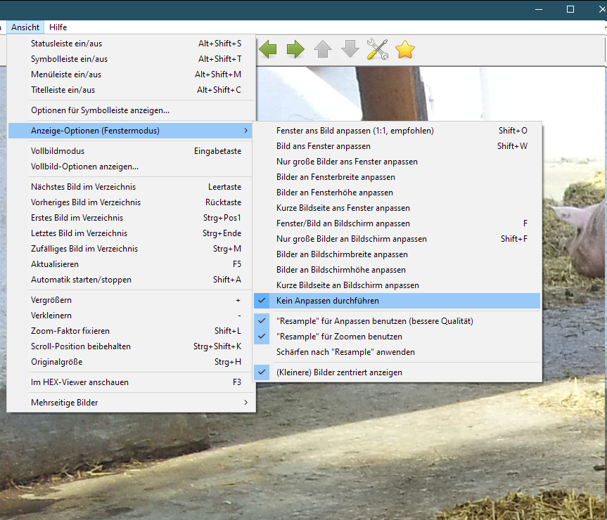 • Kann der Faststone-Viewer auch, muss nur explizit eingestellt werden. Firefox stellt zB ein großes Bild direkt so, dass alles reinpasst. Hatte ich neulich hier ins Forum gestellt, muss man zoomen für 1:1.