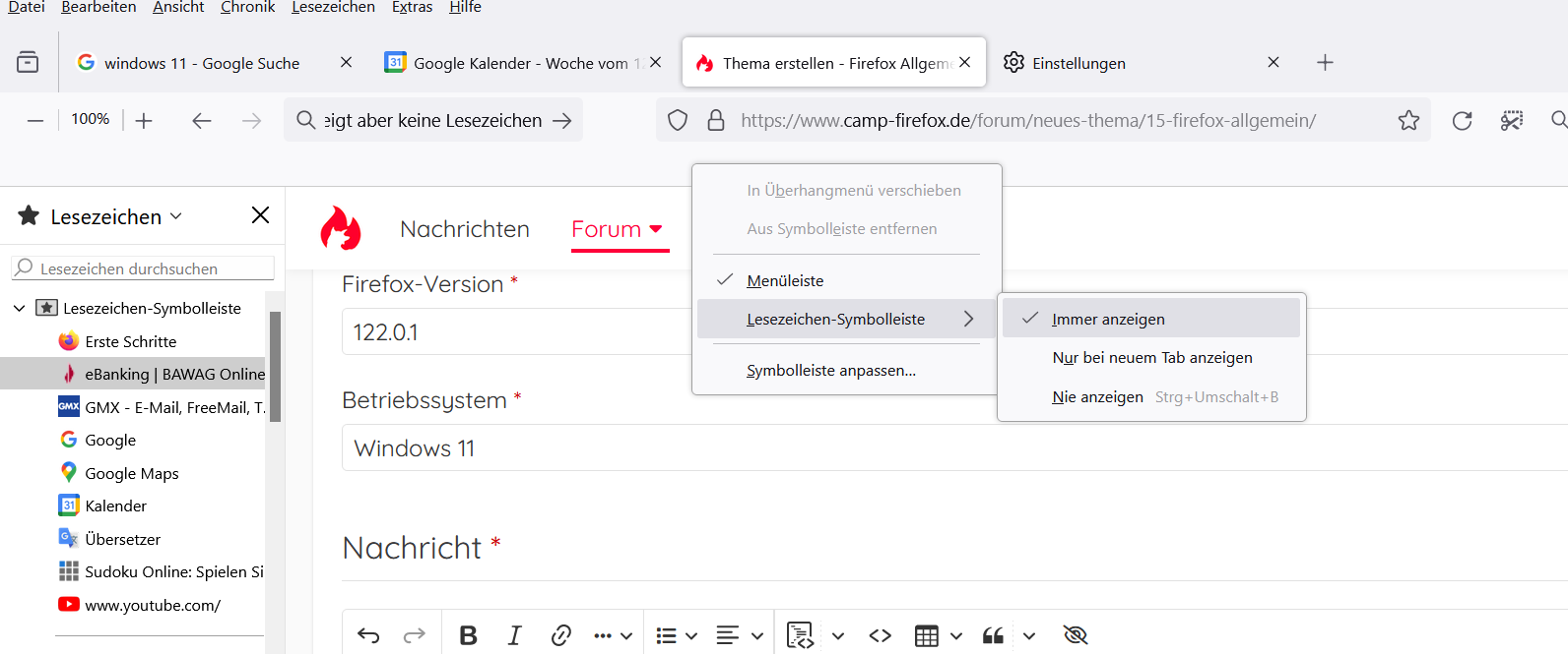 Lesezeichen-Symbolleiste