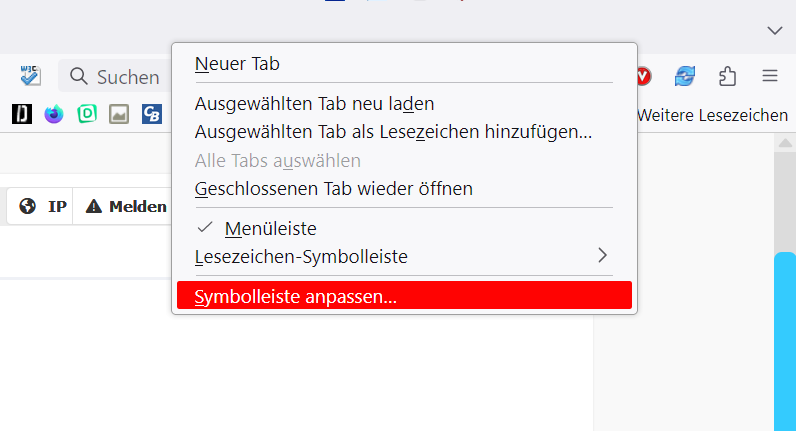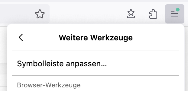 neues Profil, neues Problem. Da unter dem Hamburger-Symbol (=3 Striche) das Menü "Anpassen" nicht mehr zu finden ist, bekomme ich das kleine Symbol auch nicht mehr neben die Adressleiste. Wie geht es trotzdem?