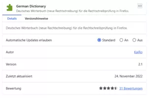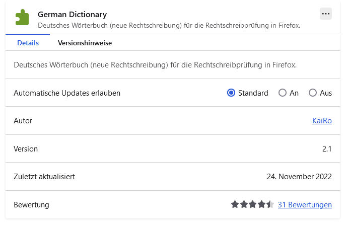 Deutsches Wörterbuch – Holen Sie sich dieses Wörterbuch für 🦊 Firefox (de)