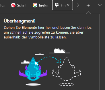 Ich habe nach langer Zeit Firefox aktualisiert und bisher am Ende der Tableiste die Möglichkeit über ein '+' Symbol einen weiteren Tab einzufügen sowie über einen Pfeil ein Ausklappmenü anzeigen zu lassen, in dem alle geöffenten Tabs aufgelistet sind.