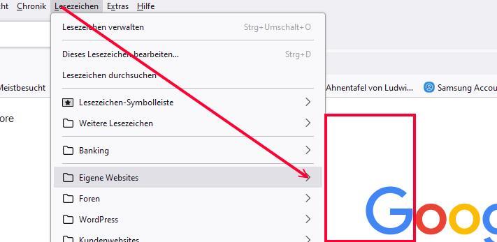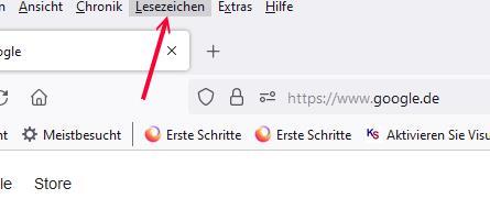 Beim zweiten Öffnen wird die Lesezeichenübersicht angezeigt, jedoch keine Lesezeichen.