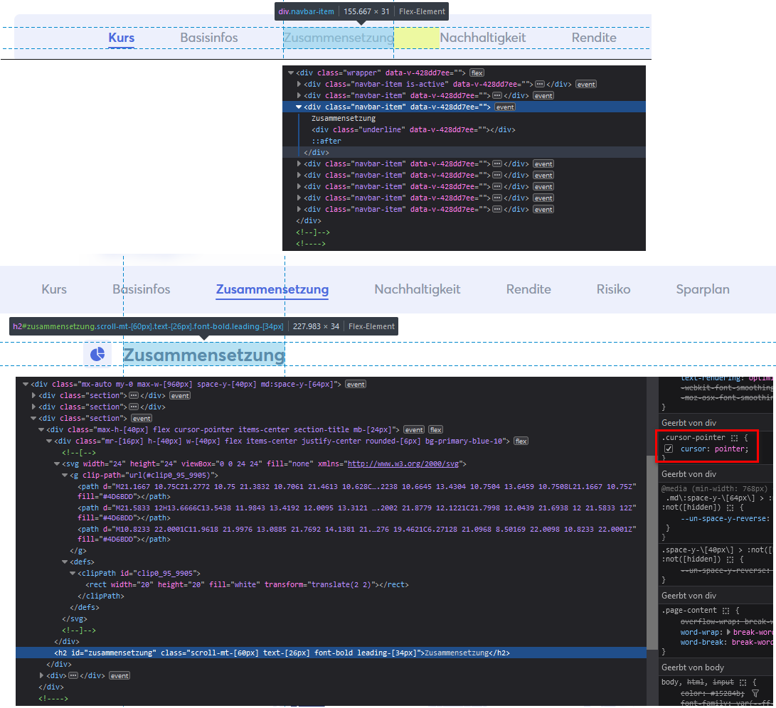 - Curser wird zu Pointer, ist dennoch kein Link noch irgendwas in diese Richtung