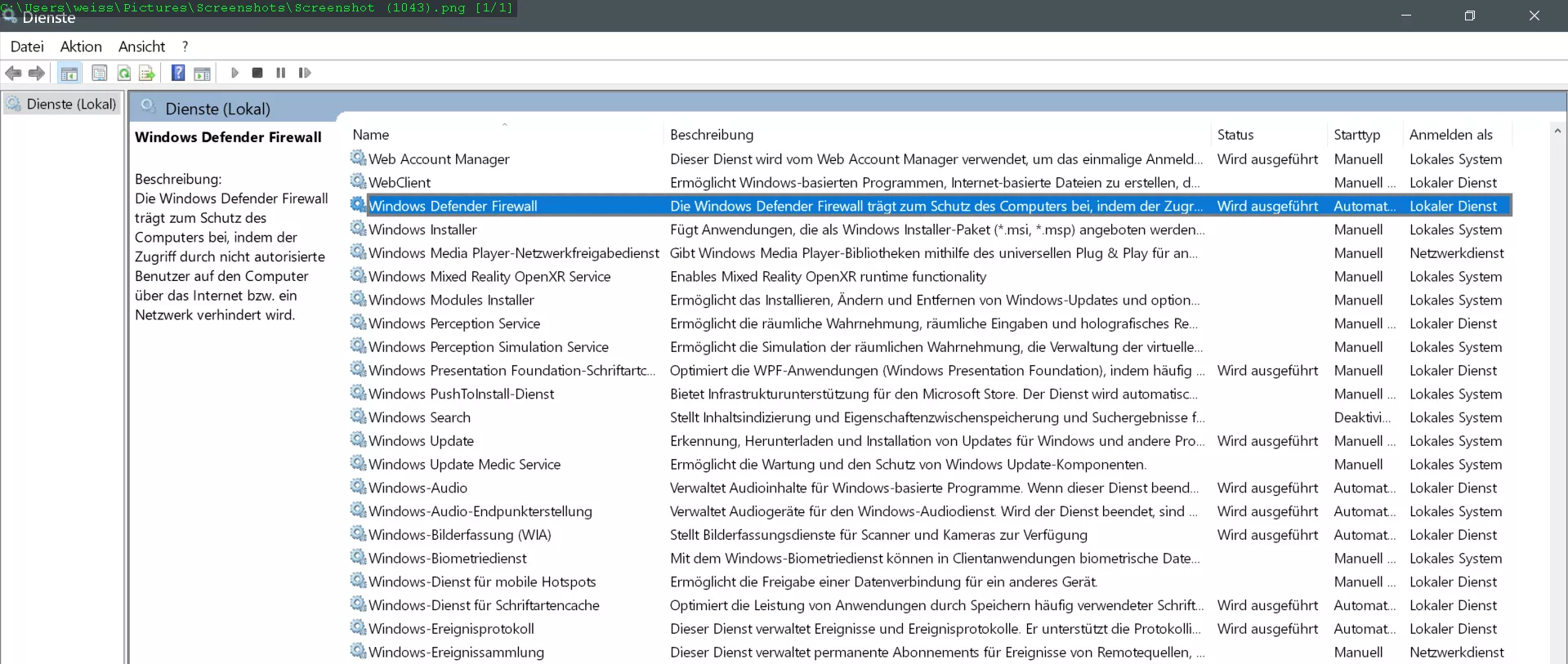 Windows Defender Antivirus-Netzwerkinspektionsdienst – Manuell
