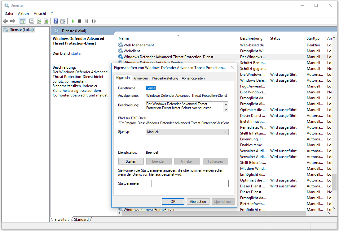 Windows Defender Advanced Threat Protection-Dienst- Manuell