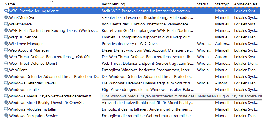 • Suche die folgenden Dienste und stelle sicher, dass der Starttyp dieser Dienste auf die Standardwerte gesetzt ist: