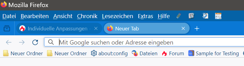 Anpassung Lesezeichen-Symbolleiste (u.a. Breite)