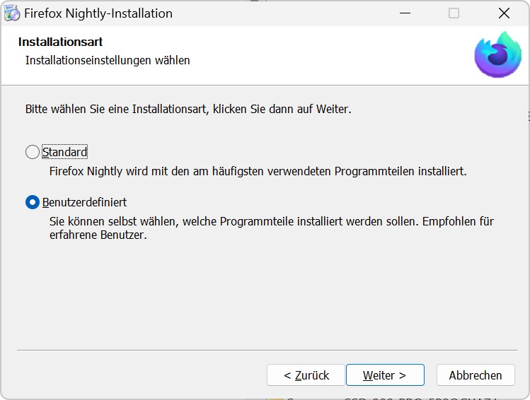 Ich kann zwar die neueste Nightly-Version herunterladen (als installer.exe), finde jedoch keine Möglichkeit, den Pfad anzugeben.