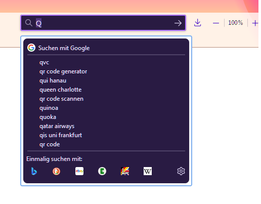 Alles anzeigen/* Suchergebnisse mit blauen Rahmen um Kasten anzeigen */ panel { --panel-shadow: 2px 2px var(--panel-shadow-margin) hsla(0,0%,0%,.2) !important; --panel-border-color: #7FB0EF !important; --panel-border-radius: 4px !important; } #PopupSearchAutoComplete::part(content) { border-width: 5px !important; } #PopupSearchAutoComplete { max-width: 420px !important; margin-left: 16px !important; border-width: 5px !important; } menupopup, panel { @media (-moz-platform: linux) or (-moz-platform: windows) { & { --panel-shadow-margin: 19px !important; } } } /* Abstand des Fensters mit Suchergebnissen nach oben */ #PopupAutoCompleteRichResult, #PopupSearchAutoComplete { margin-top: -13px !important; }Der Code
