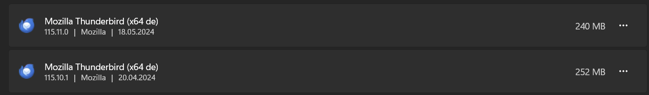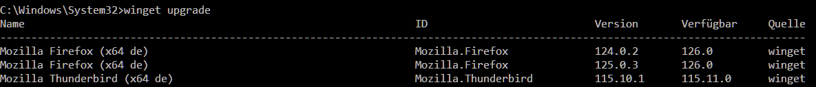 ich setze ganz gerne seit einigen Wochen zum Updaten von Programmen den Winget upgrade-Befehl in der Konsole ein. Leider scheint er bei Firefox und Thunderbird für Chaos zu sorgen. Seitdem ich das mache, erscheinen mehrere Thunderbird- und Firefox-Instanzen auf meinem Rechner und der Winget-Befehl empfiehlt mir, diese upzudaten, wobei meine aktuell genutzten alle auf dem neuesten Stand sind.