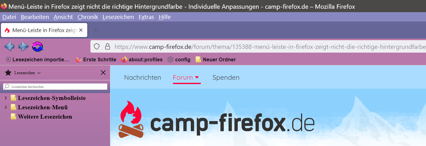 W11 hat automatisch auf dunkelbraun umgeschaltet, mit der Folge, dass die Task- und Titelleiste die falsche Farbe anzeigte. Erst durch ein Drittanbieter-Programm "WinPaletter" bekam ich die richtigen Farben. Ich verwende die Farbe in Firefox (Lesezeichen-Menü + - Symbolleiste) und in Thunderbird. Das hat Firefox mit Altrosa, um auf deine Eingangsfrage zurückzukommen, in Windows zu tun.