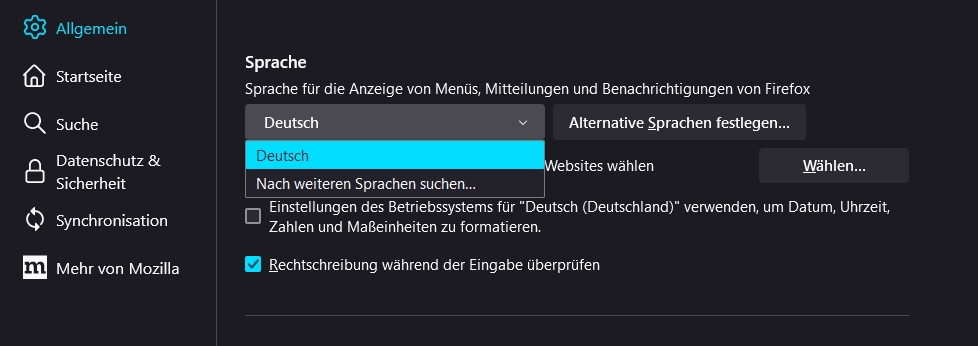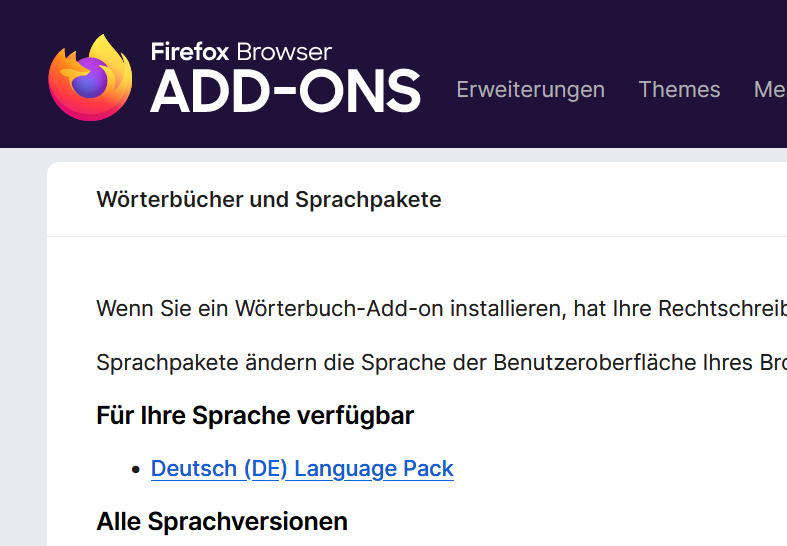 In den FF-Einstellungen ist aber "deutsch" eingestellt und das unter Linux erforderliche Paket "firefox-l10n-xpi-de" ist ebenfalls installiert.
