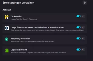 • Siehe Erweiterungen -> Kaspersky. Vermutlich ist auch Kaspersky Antivirus installiert, das hat dann noch den Webschutz. Und deswegen kommt auch noch die Meldung