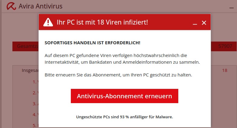 Wenn ich auf die Fenster klicke, bekomme ich ein Angebot von Avira für Antivirussoftware. Hier nochmal 2 der Fenster::
