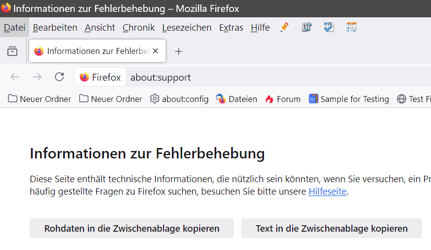 Warum hast du nicht den Inhalt von about:support in einen Code-Kasten eingefügt, wie ich es in Beitrag #22 beschrieben habe? Du hast den Inhalt einfach ins Antworten-Fenster kopiert, das ist sehr unübersichtlich. Den Hinweis mit dem Code-Block geben wir nicht ohne Grund.