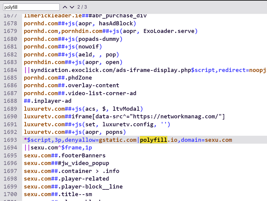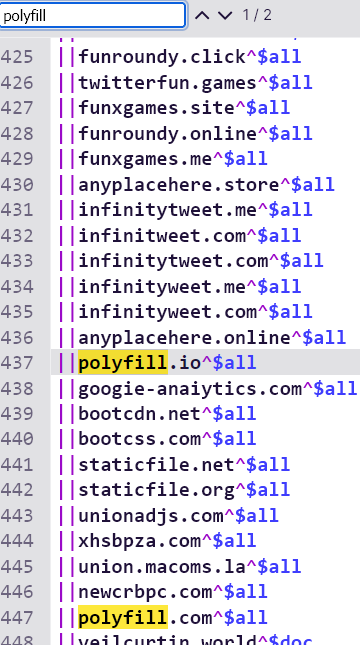 doch im Inhalt ist "polyfill.io" nicht enthalten.