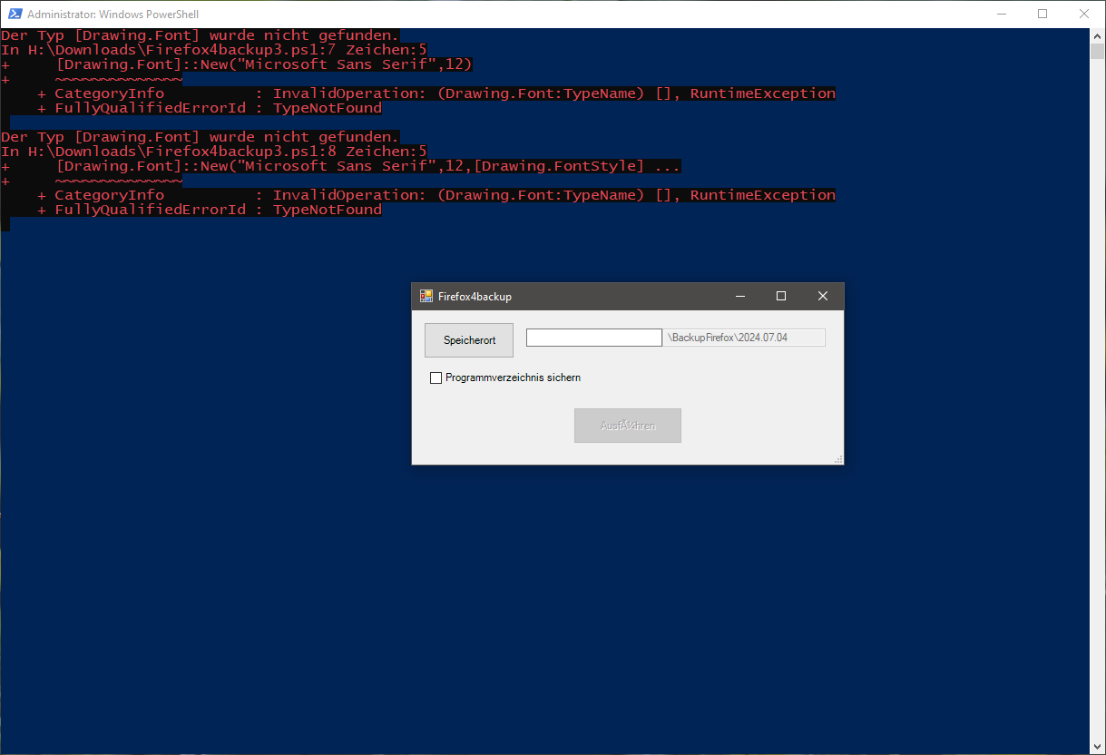 HKCU:\Software\FF_Backup wird ja auch beim ersten Start angelegt, aber auch nur, wenn eine LW ausgewählt wurde.