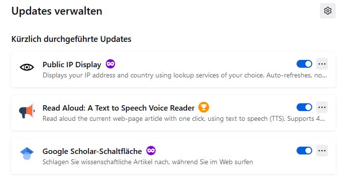 Dieses Pop-up erscheint, seitdem ich meine Add-Ons manuell über die vorgesehene Funktion upgedatet habe unregelmäßig im Abstand von ca. 10-15 Minuten unten rechts im Bildschirm und verschwindet nach 3-5 s. wieder.