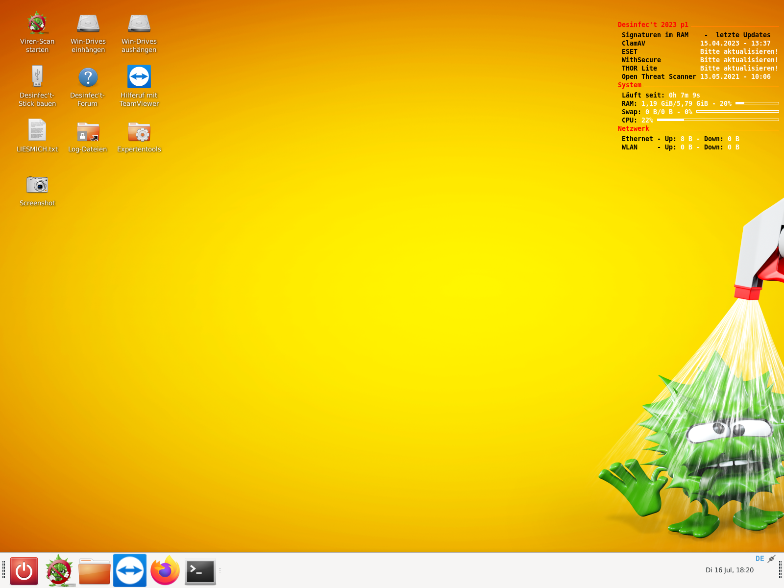 Ich habe gerade das Bild von Desinfect unter Linux fotografiert